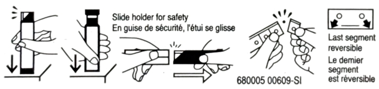 CTN-1刀片採用日本高品質工具用碳鋼,較安全的單面切緣,提供了六個切割段數可使用。