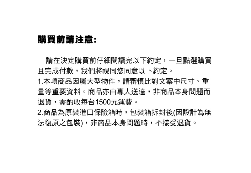 ※本商品採預約方式出貨,訂單成立後3個工作天內送達(不含週六日及國定假日),如廠商有約定日將於約定日期內送達。