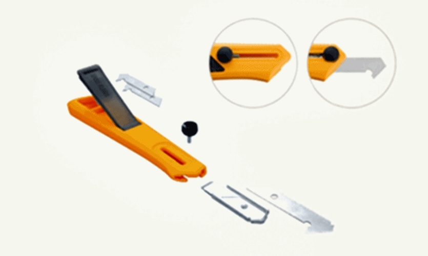 替換刀刃:將旋鈕轉鬆到底,取出刀片軌道,將新的替刃放入(記得孔對孔喔),將刀片軌道放入刀具內,並將旋鈕對準軌道孔旋緊即可~