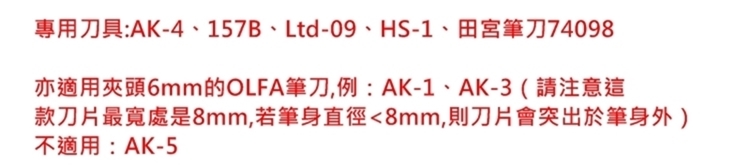 ●【品名】日本OLFA筆刀刀片6mm筆刀替刃KB4-F/5(5入;平刃;高碳鋼)適AK-4 157B Ltd-09 HS-1田宮Tamiya 74098