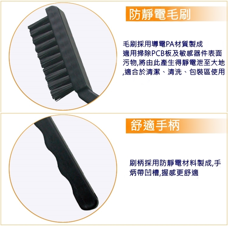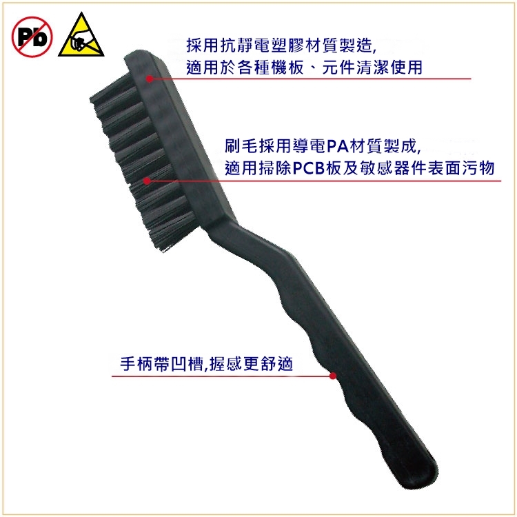 .採用抗靜電塑膠料製造,適用於各種精密機板、元件清潔使用。