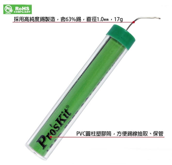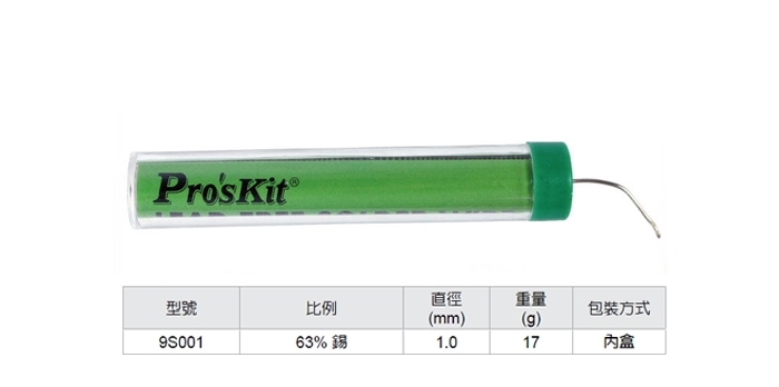 ●【品名】台灣 ProsKit 寶工 高亮度錫筆(綠蓋)63% 直徑1.0mm,17g / 3M 9S001