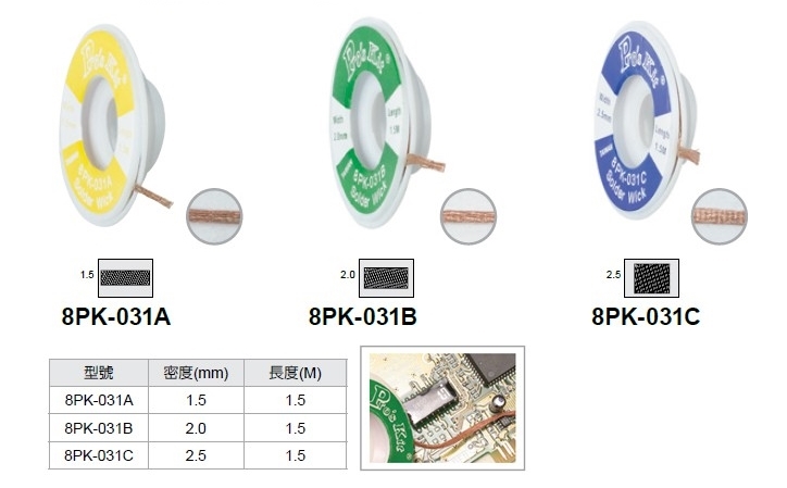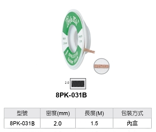 ●【品名】台灣 ProsKit寶工 吸錫網線(2.0mm*1.5米) 8PK-031B