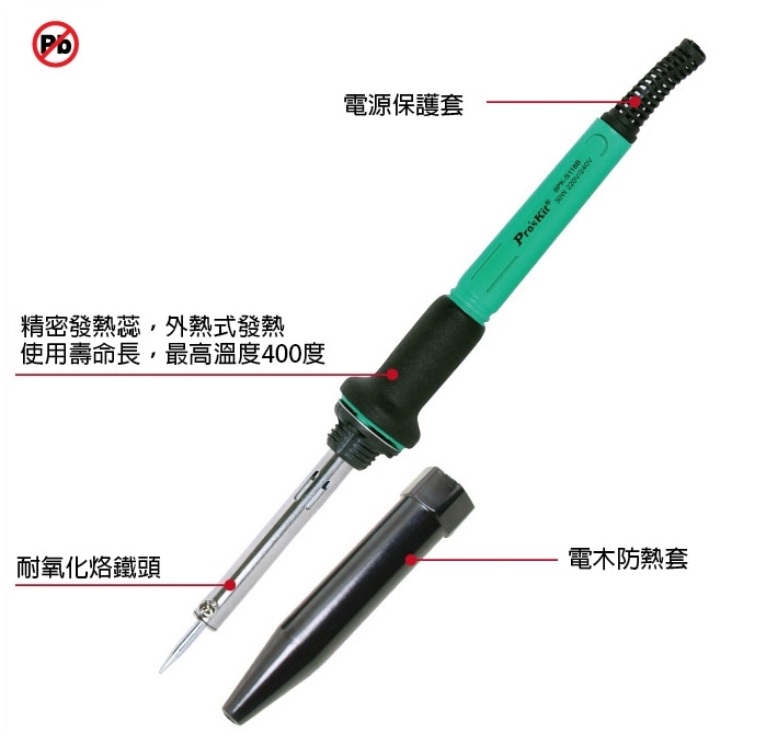 ●【品名】台灣 ProsKit 寶工 耐氧化烙鐵(附防熱套)30W/110V 8PK-S118A