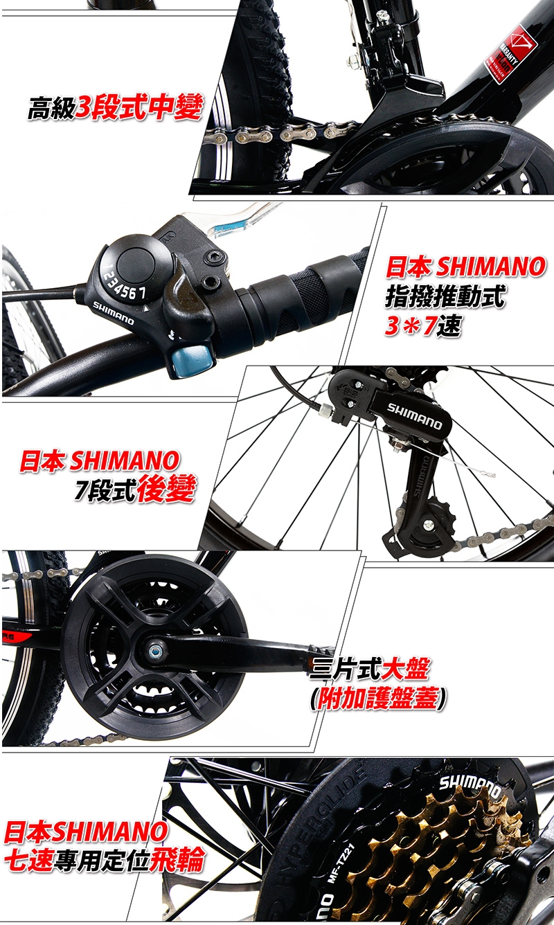 變速控制桿:日本 SHIMANO指撥推動式 3*7速 定位控制桿
