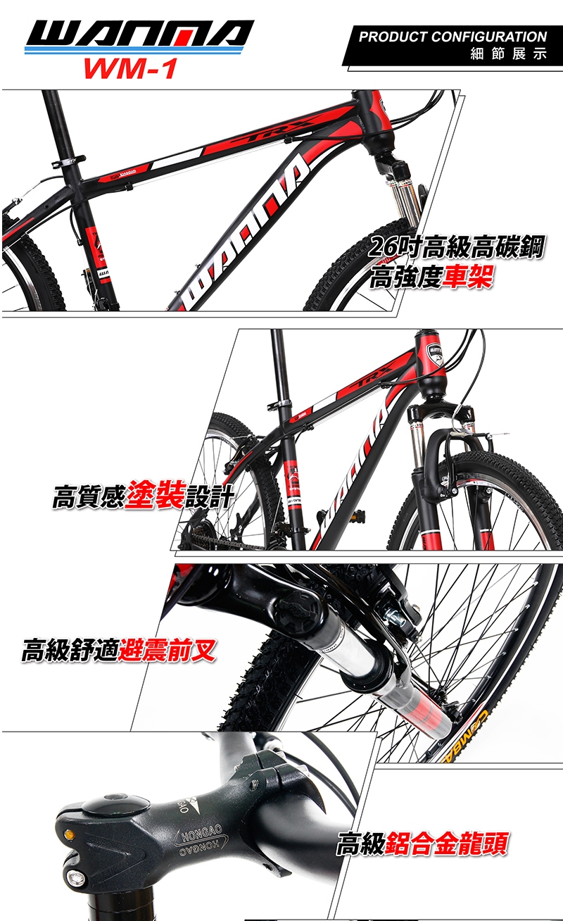車 架:26吋高級高碳鋼高強度車架,搭配高質感塗裝設計