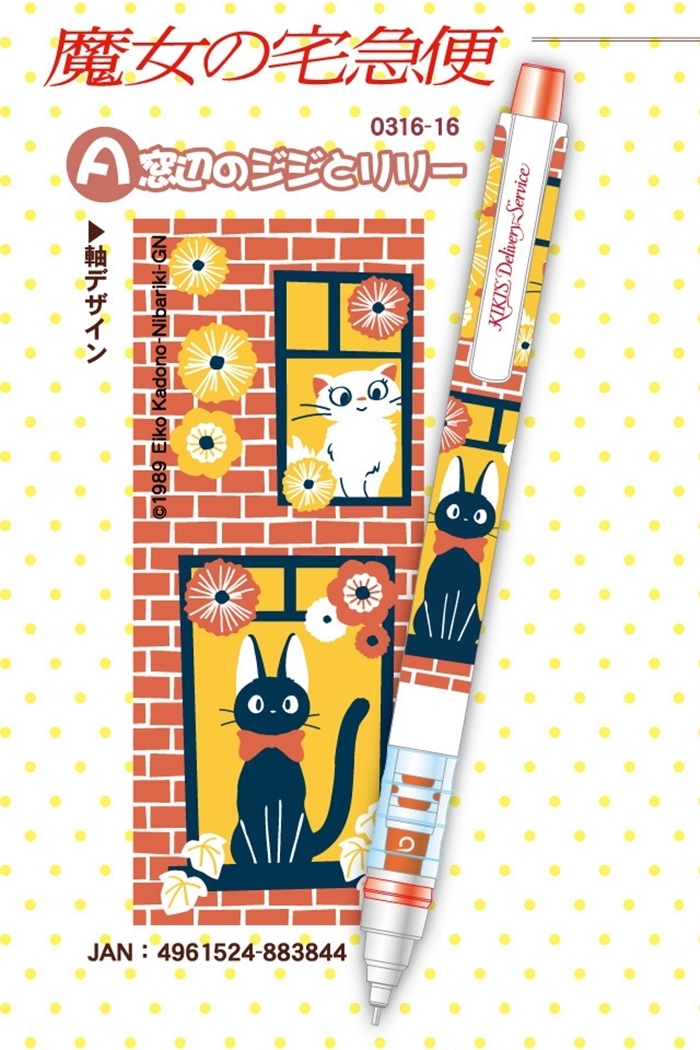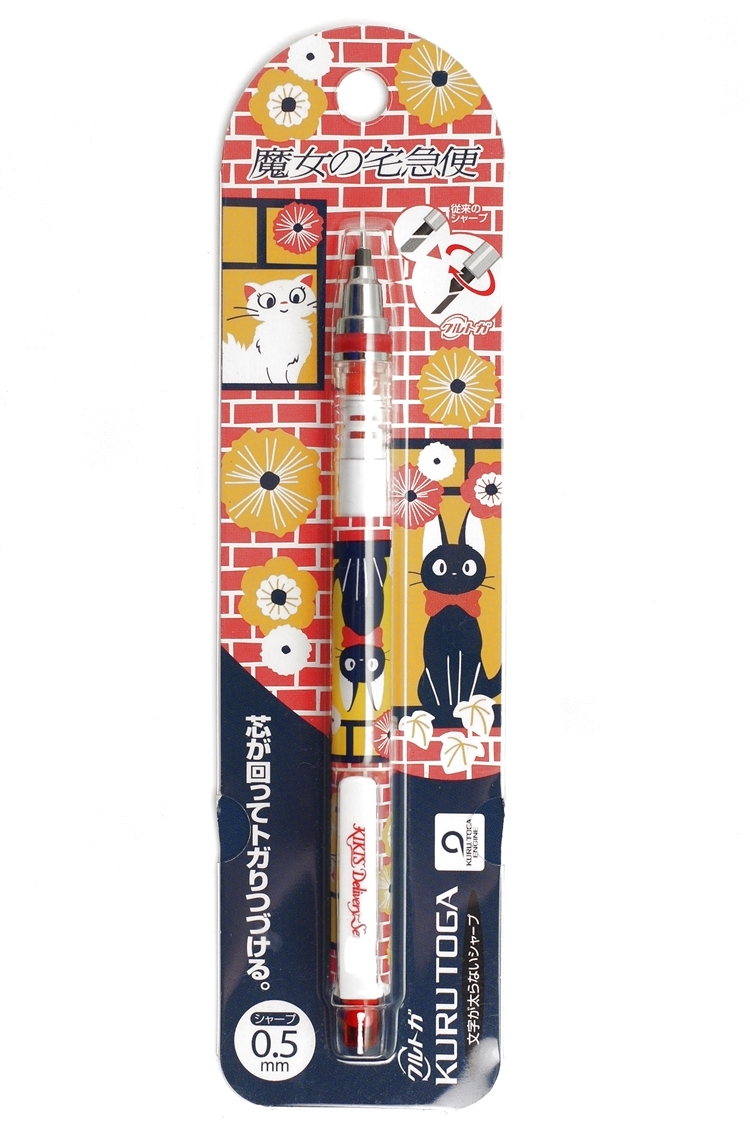 ●【品名】日本UNI宮崎駿KURU TOGA 0.5mm不易斷蕊自動旋轉鉛筆0316-16魔女宅急便-窗口邊的黑貓吉吉和白貓莉莉(日本原裝進口)