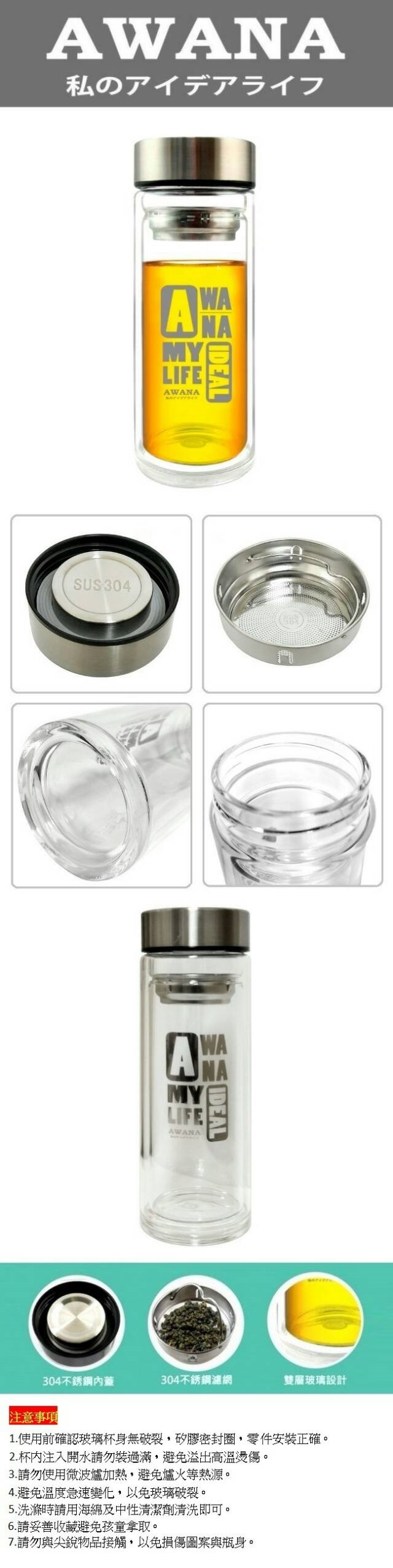 【AWANA】濾網雙層玻璃杯(500ml)GL-500