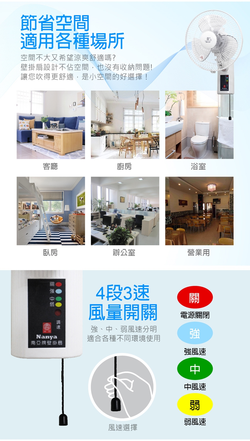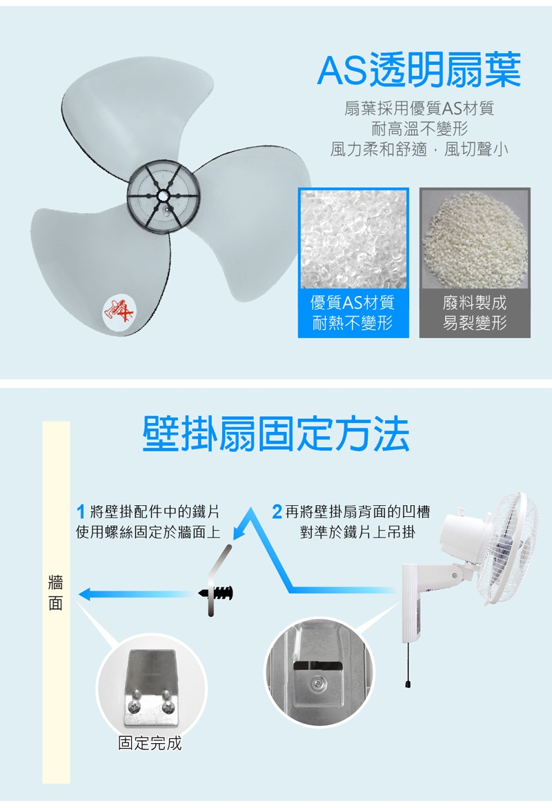 ■ 16吋雙拉壁掛扇,扇葉尺寸:35CM