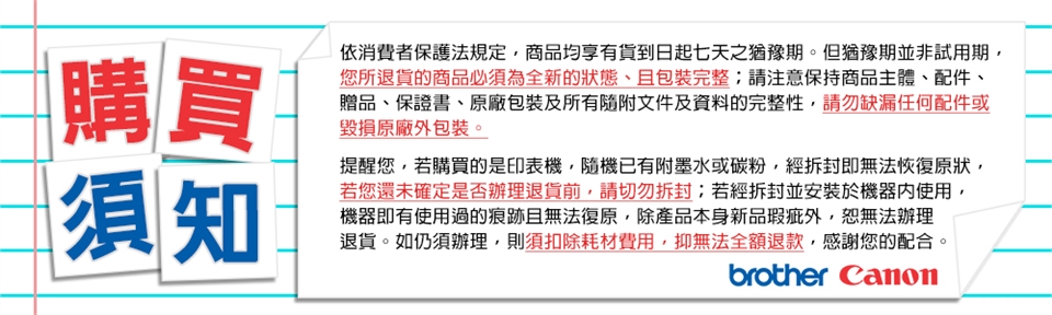 除商品本身新品瑕疵外,購買後一經拆封或使用會酌收耗材整新費用,購買時請多留意。
