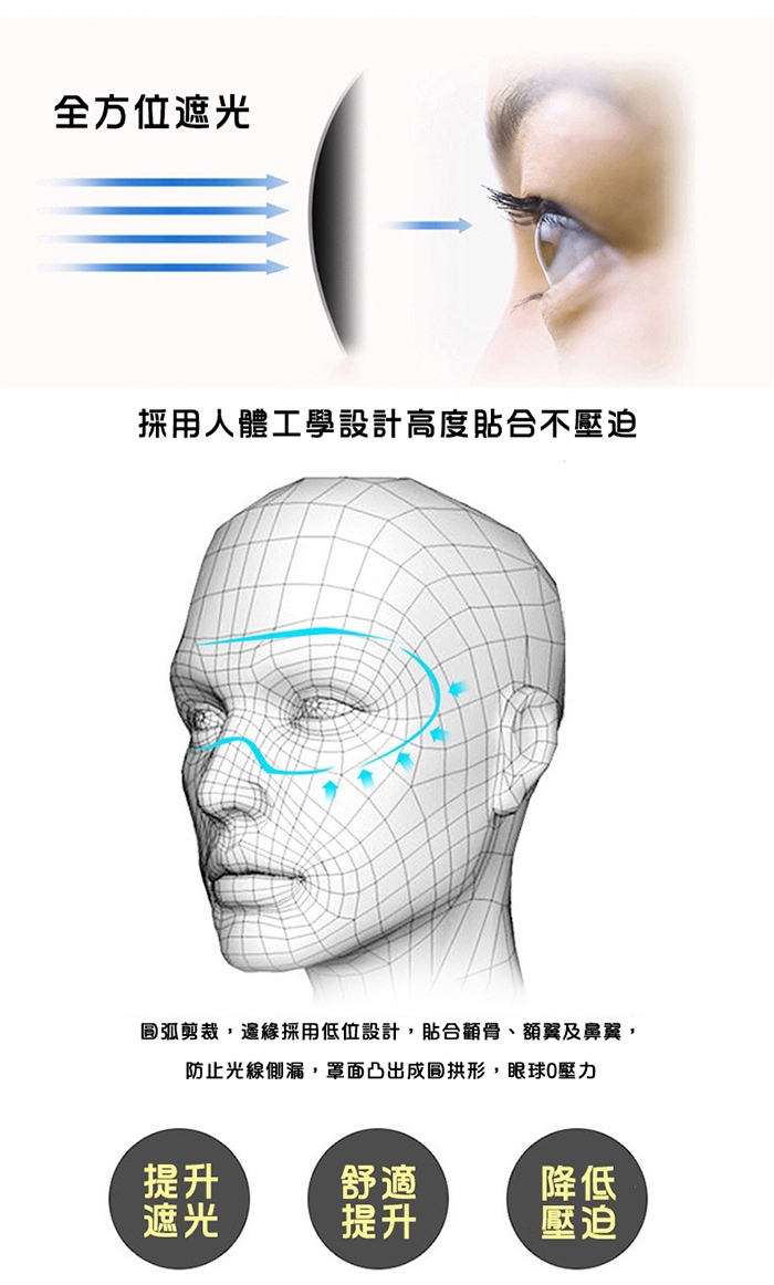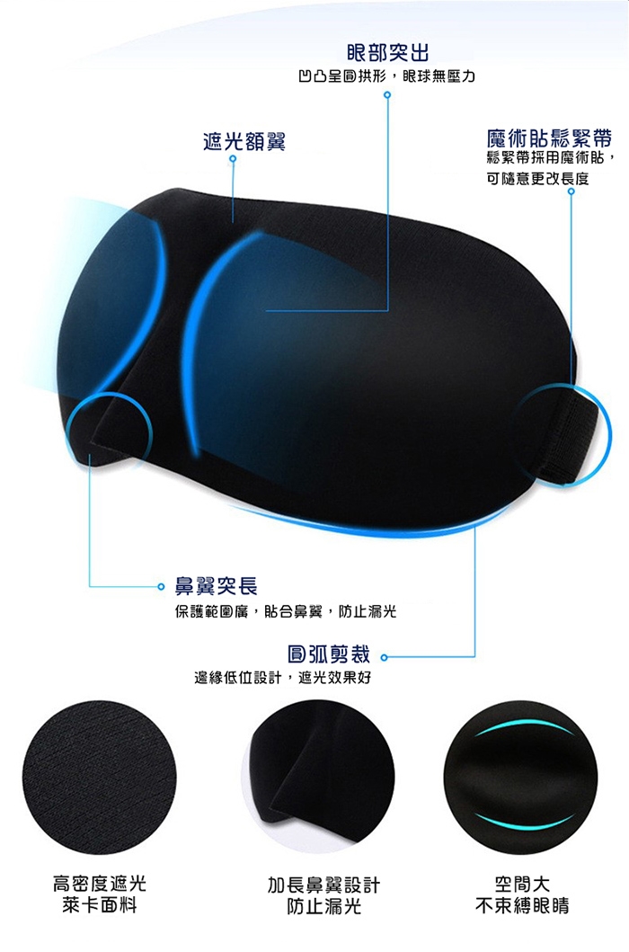 3D立體剪裁,超柔軟透氣,遮光性好,
