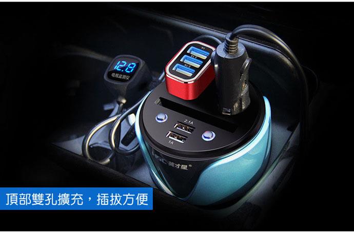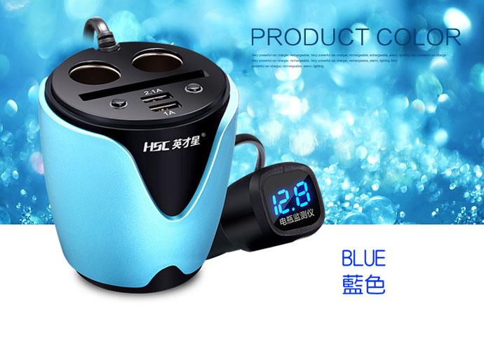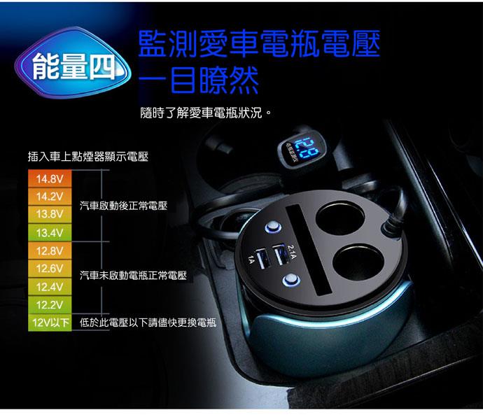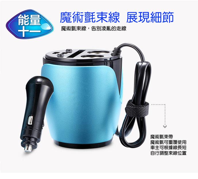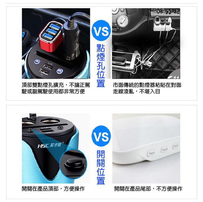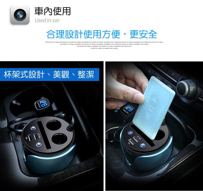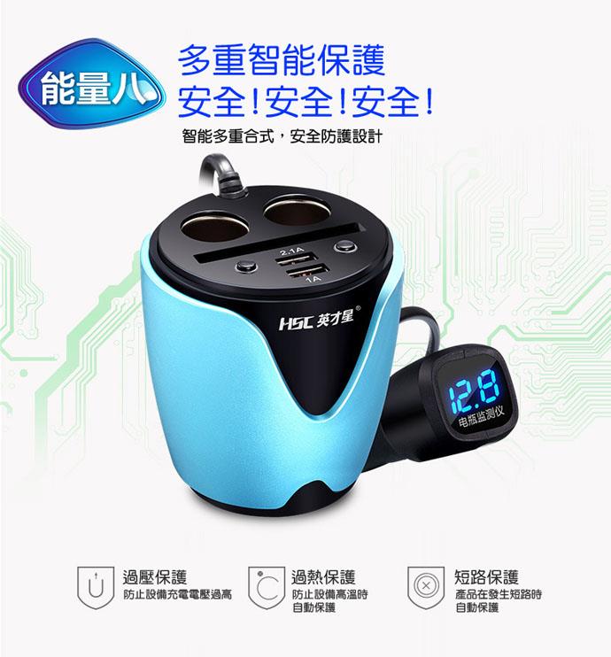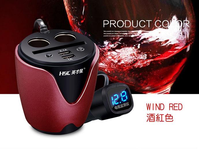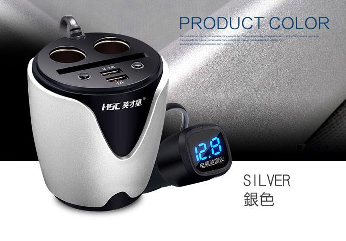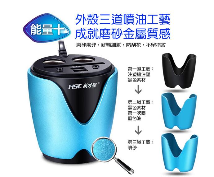 【英才星】HSC-200D車用杯座型電檢擴充器,車杯造型可直接放在杯架上使用,支援12~24V,任何車種皆可使用!磨砂烤漆打造時尚金屬質感,貼心附卡槽,可放停車卡、悠遊卡等,多種接孔,一機解決手機、平板、行車紀錄器等充電插槽,三色超值任君挑選!