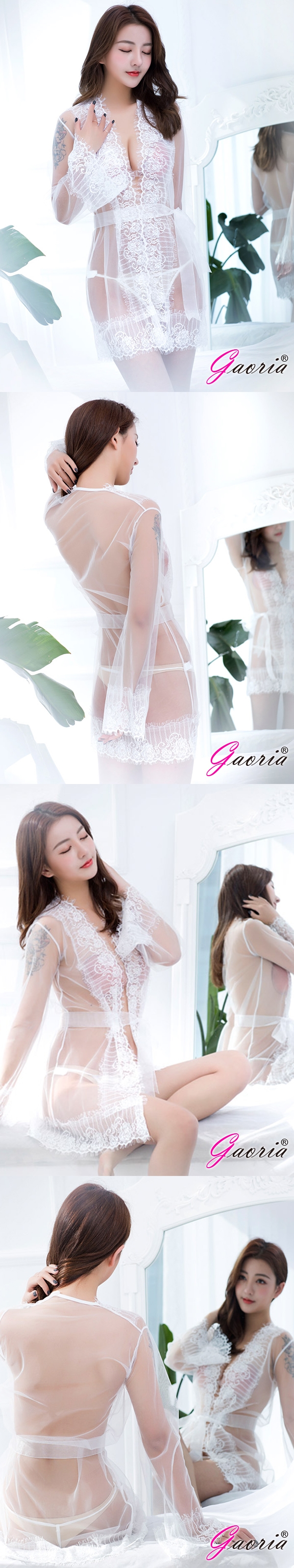 · 商品名稱:【Gaoria】 品嚐禁果 二件套裝 三點開襟 蕾絲性感睡衣 白