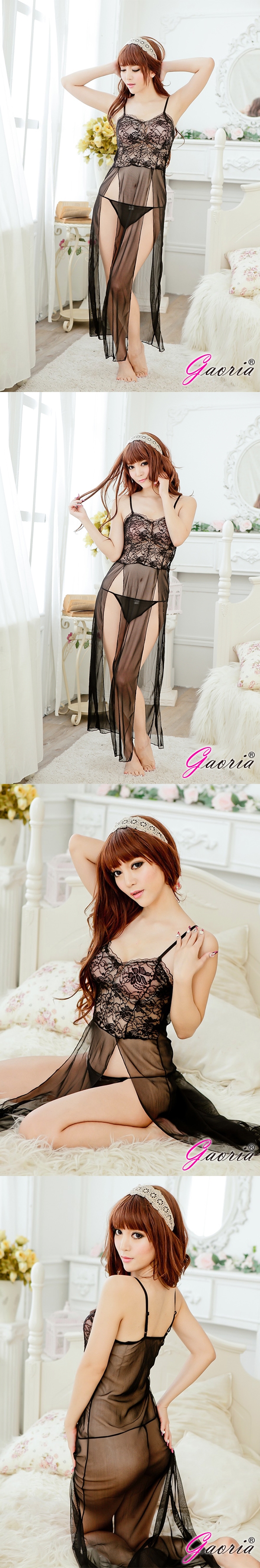· 商品名稱:【Gaoria】夜寐女郎 蕾絲透明前開叉長睡裙 性感情趣睡衣