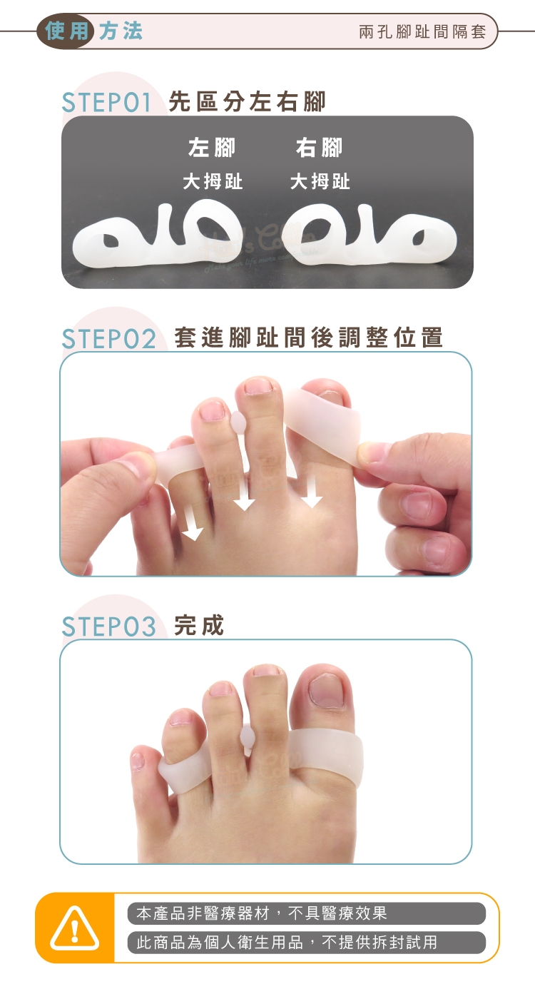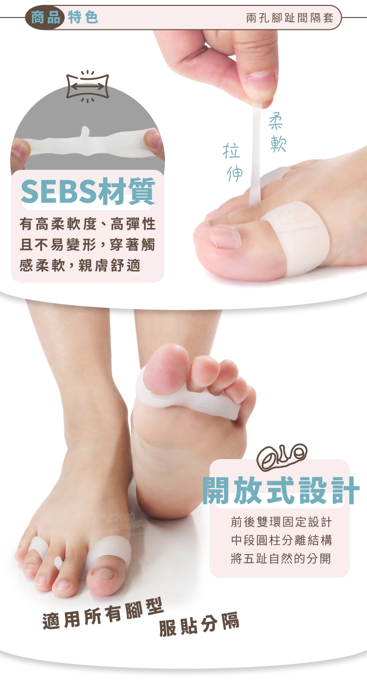 兩孔腳趾間隔套特色: