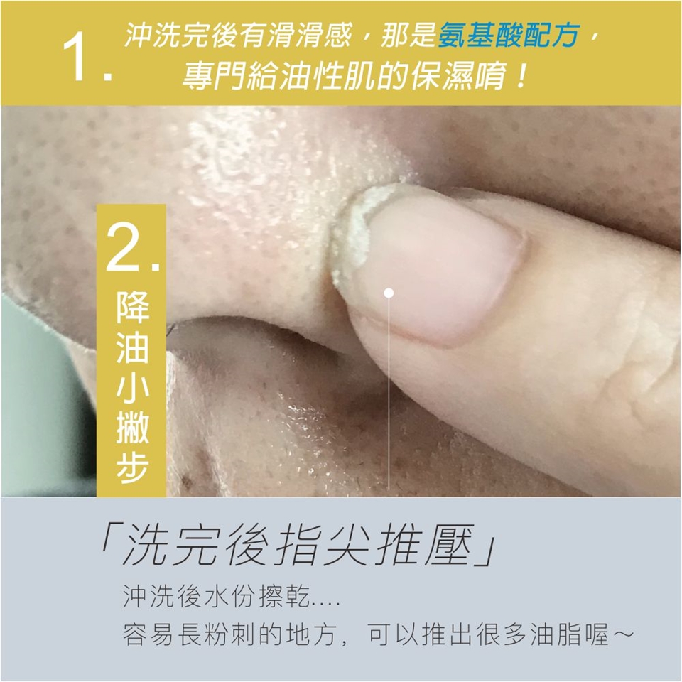 2.沖洗後會有種微潤滑感:這一款採用氨基酸表面活性劑,會增加洗後的保水感。當你沖洗後擦乾水份就能立即感受到,不像傳統的去角質產品洗後很緊繃!
