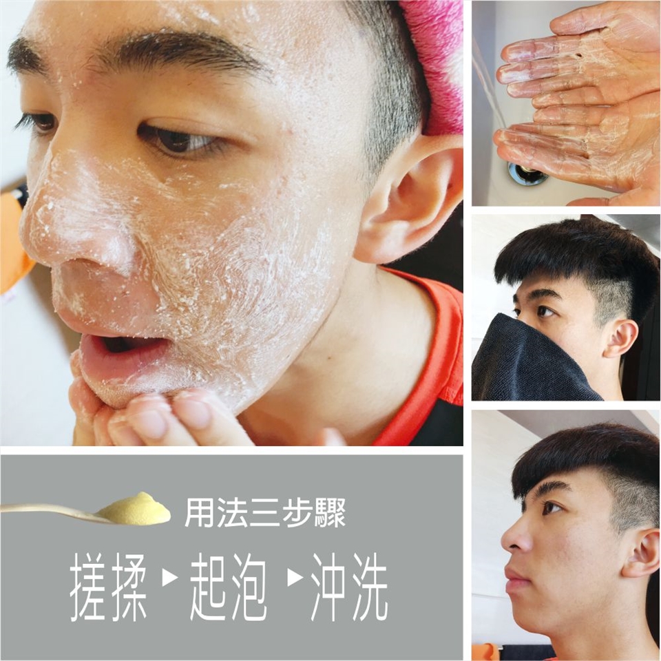 用法:三步驟:搓揉→起泡→沖洗。 先取少量在粗髒的臉部進行搓揉1~2分鐘,然後再加水起泡洗臉,最後再利用清水沖洗乾淨即可。