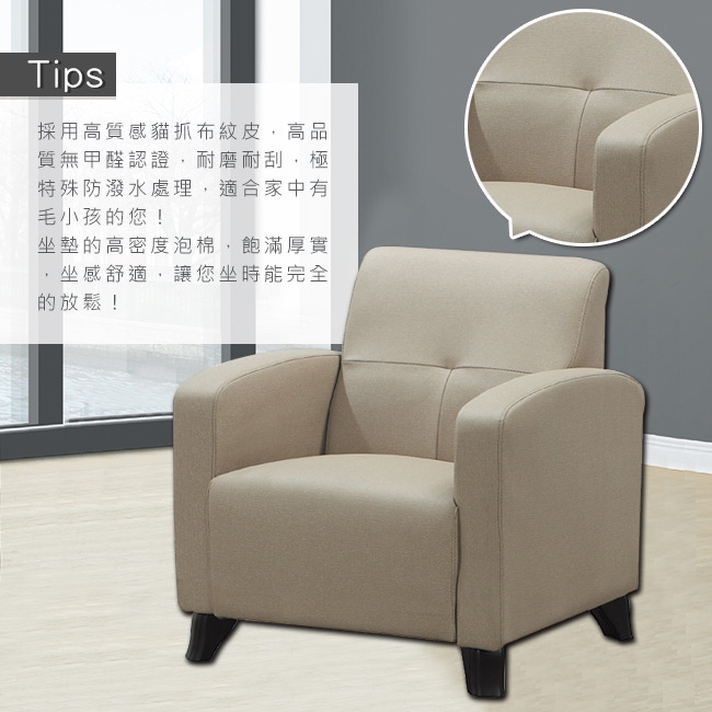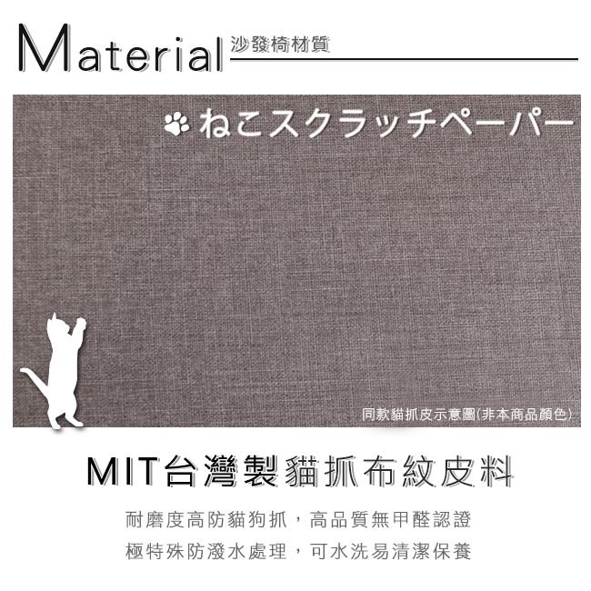 質感高耐磨貓抓布紋皮革,經特殊防潑水處理,讓您輕潔保養更加輕鬆!