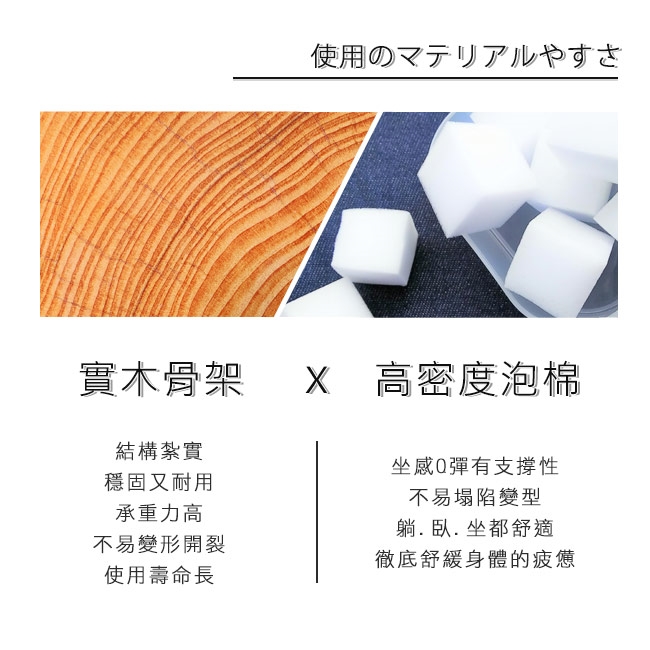 優質實木骨架製作,結構紮實,堅固耐用不必擔心塌陷問題!
