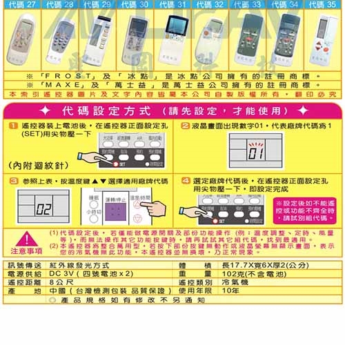 【Dr.AV】冰點/萬士益專用冷氣遙控器/變頻系列(AR-MF1)