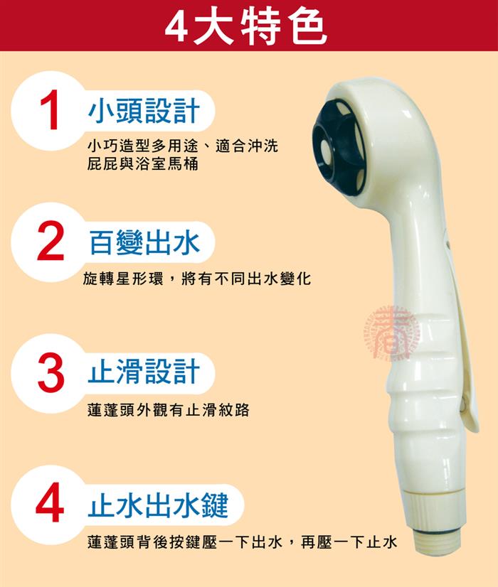 商品詳細介紹 魔特萊海馬造型洗屁屁花灑 一指靈按壓止水百變蓮蓬頭 商品不開放試用商品不開放試用尺寸:長200mm*寬50mm*高50mm材質:ABS塑膠顏色:深藍、深紅色(隨機出貨)產地:台灣 使用方法說明 無 注意事項 商品不開放試用