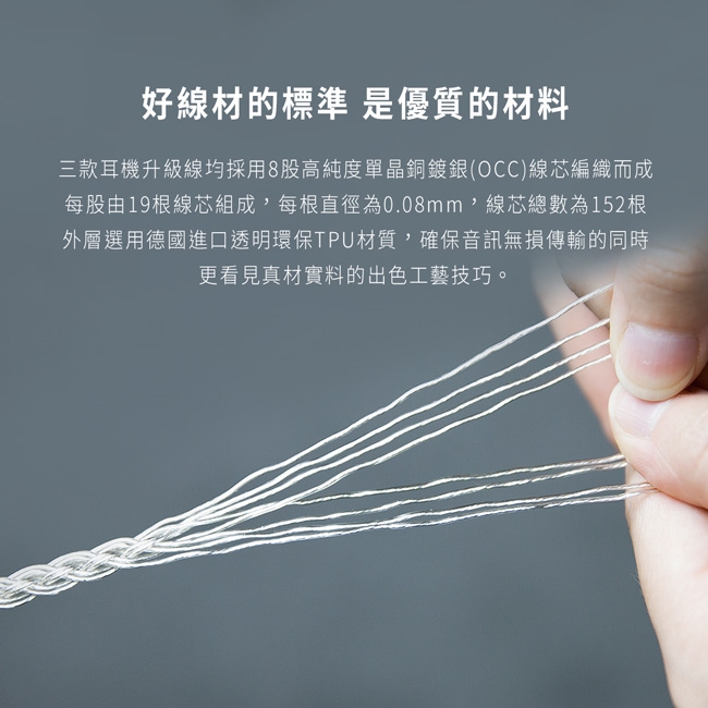 FiiO全新純手工編織升級線,內部採用8股高純度單晶銅鍍銀線芯編織而成