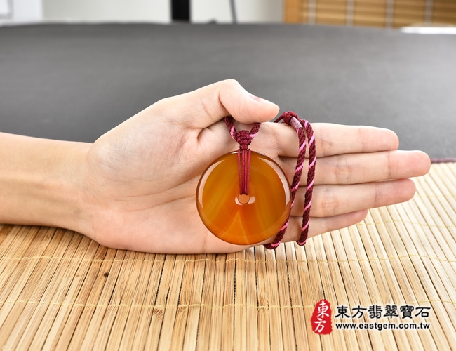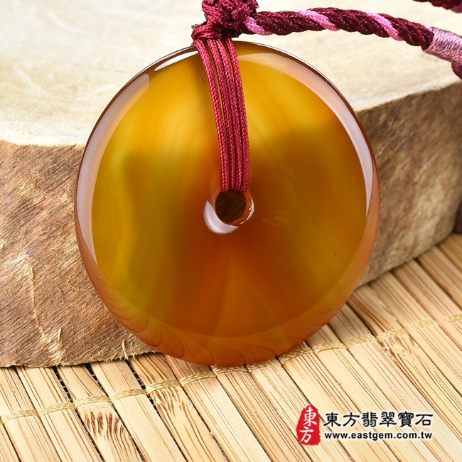 商品名稱:瑪瑙平安扣項鍊玉珮(平安富貴:平安扣牌瑪瑙平安扣玉珮、玉髓平安扣玉墜)。紅瑪瑙平安扣,PN268。客製化訂做各種瑪瑙平安扣吊墜玉珮項鍊。★東方翡翠寶石保證卡