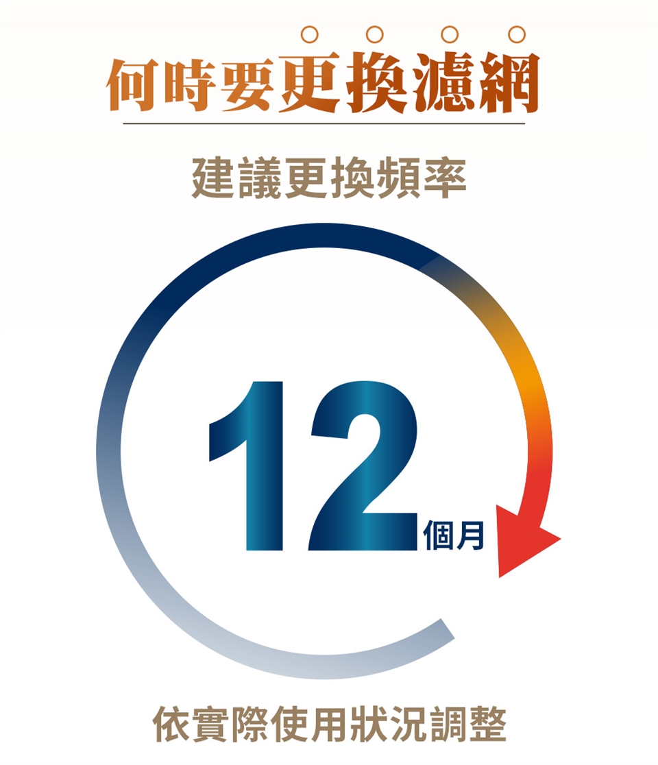 ◎建議更換頻率: 每12個月更換一次,依照個人使用頻率、環境不同而定