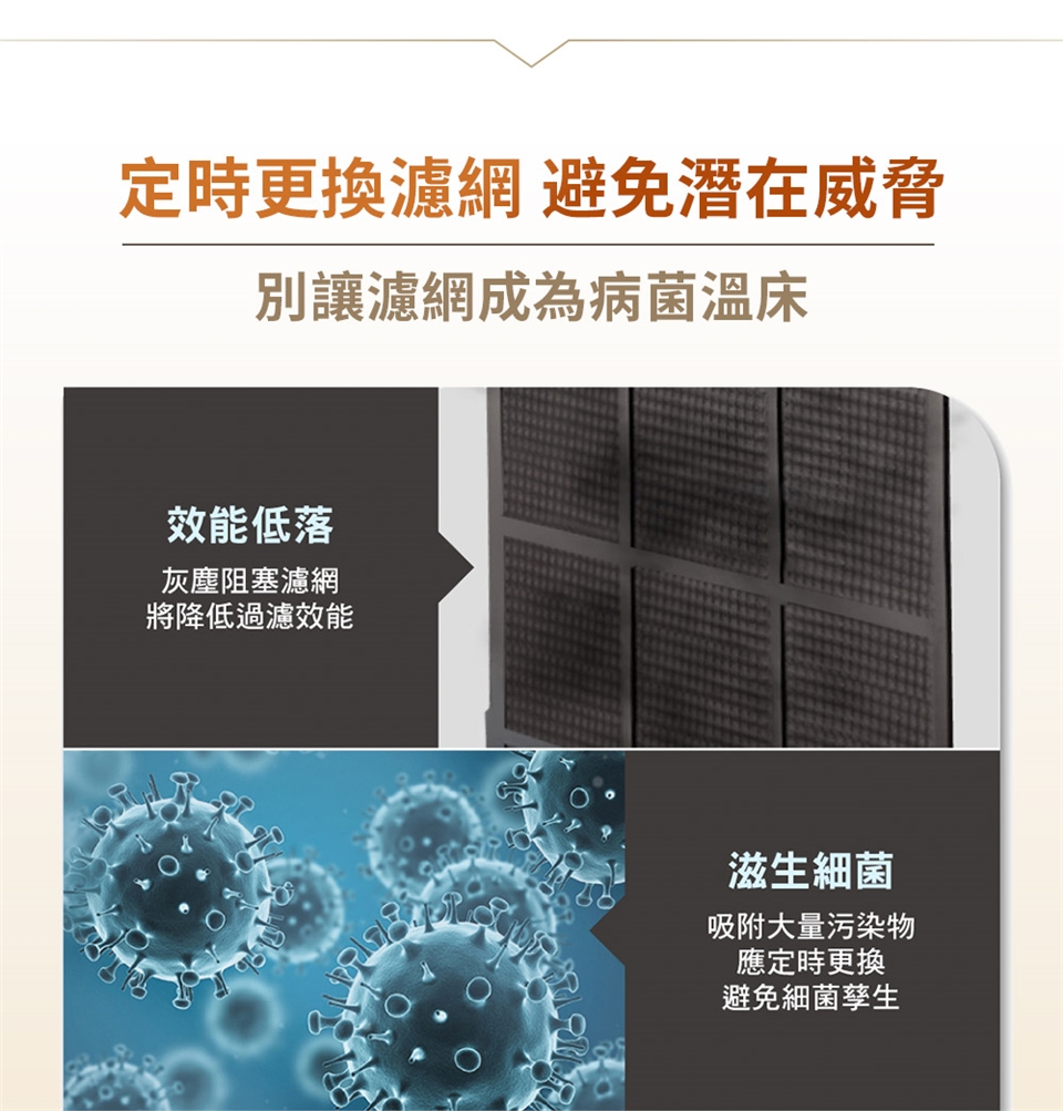 ※請使用原廠濾網,以確保最佳空氣清淨品質及機器壽命與安全,有保障又安心