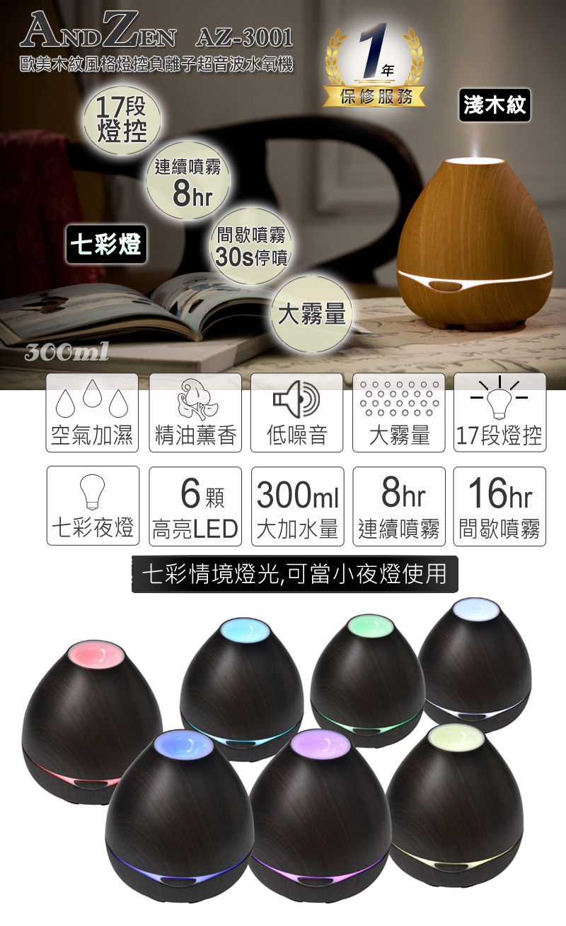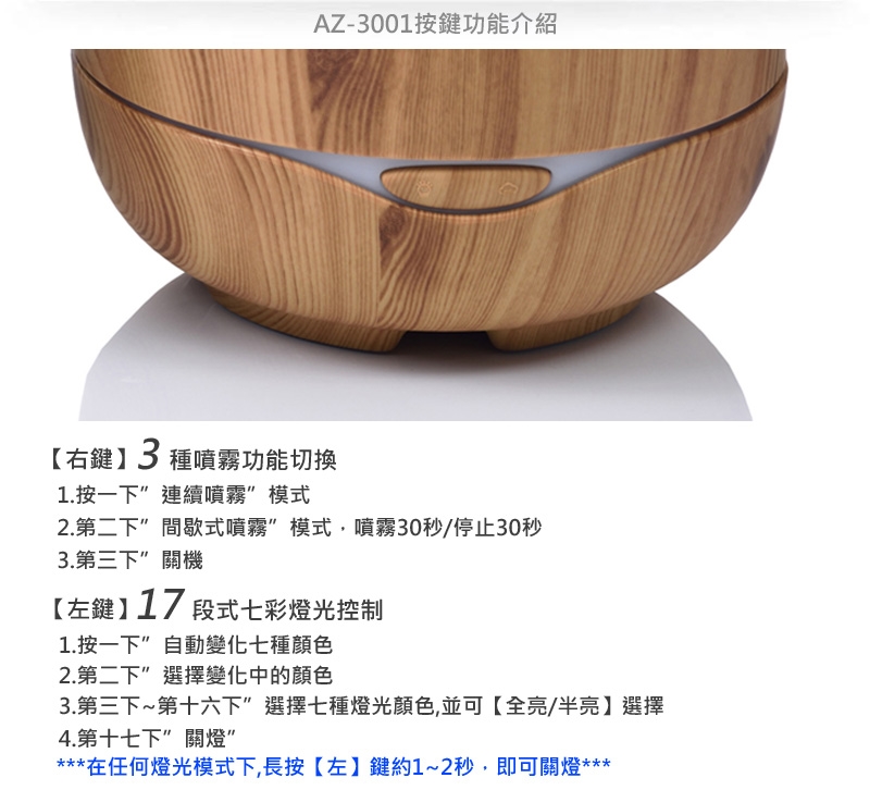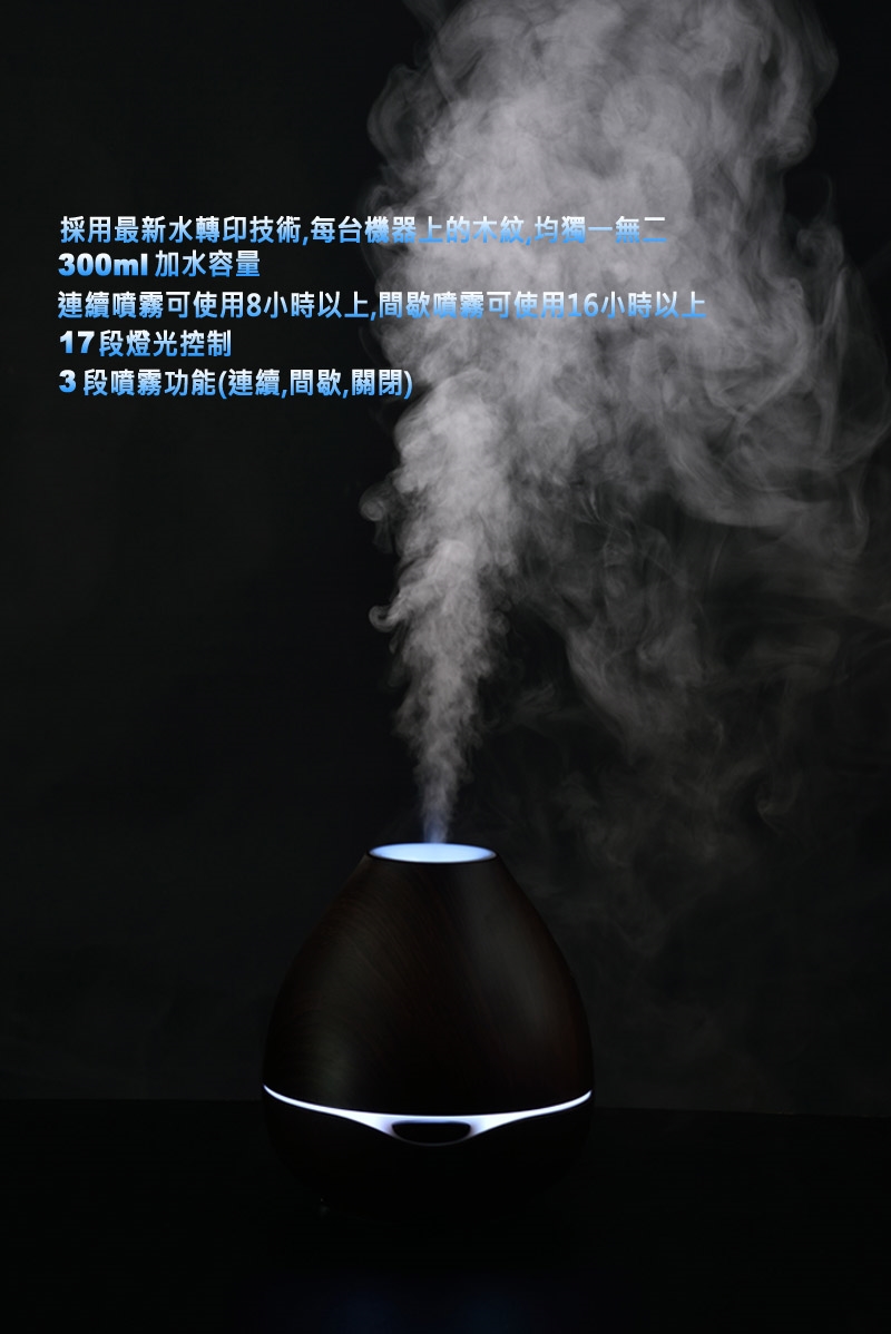 ★ 獨立17段式LED七彩情境燈,可漸層、定色、全亮或半亮;不噴霧時亦可單獨作小夜燈,氛圍溫暖動人。