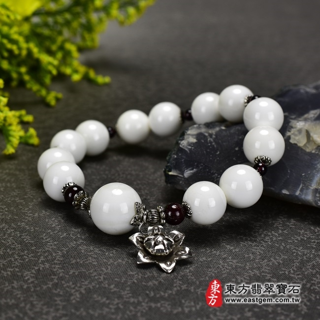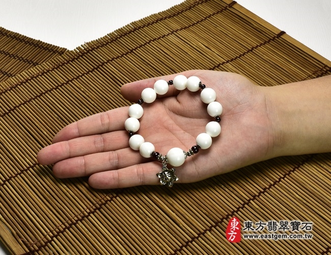 東方翡翠寶石的白硨磲手珠珠串皆採用天然硨磲、手工雕磨拋光,最正宗的硨磲就是全白的、表面雜質少、光滑圓潤,色度白不發黃、沒有坑坑漥窪的便是上品,在自然界中「白度」最高的便是白硨磲。此款白硨磲色澤潔白純淨,顆顆渾厚飽滿,質感圓潤大器、油亮有光澤感,佩帶白色手珠更顯得大方成熟。