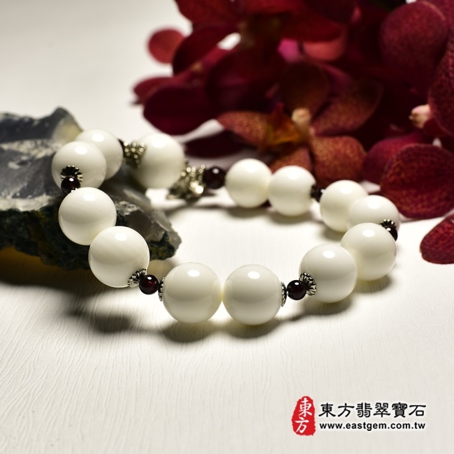 商品名稱:白硨磲手鍊(白硨磲珠子,珠徑約4-14mm,13顆白硨磲+7顆紅珠,WCG024)。客製化設計各種白硨磲珠串、白硨磲珠子、白硨磲手鍊、白硨磲手珠。★附東方翡翠寶石保證卡