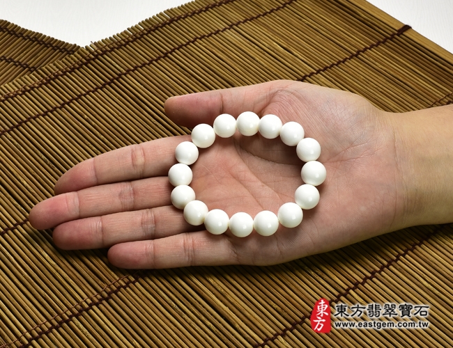 商品名稱:白硨磲手鍊(白硨磲珠子,珠徑約12mm,16顆珠,WCG099)。客製化設計各種白硨磲珠串、白硨磲珠子、白硨磲手鍊、白硨磲手珠。★附東方翡翠寶石保證卡