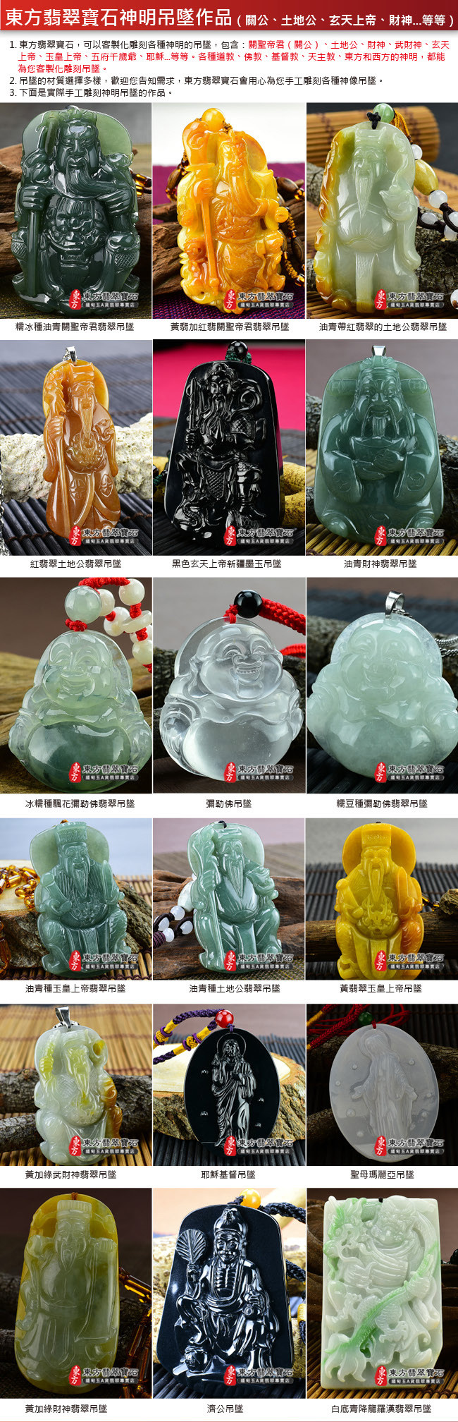 9. 客製化訂做:神明玉珮、吉祥動物植物玉墜、珠串項鍊。