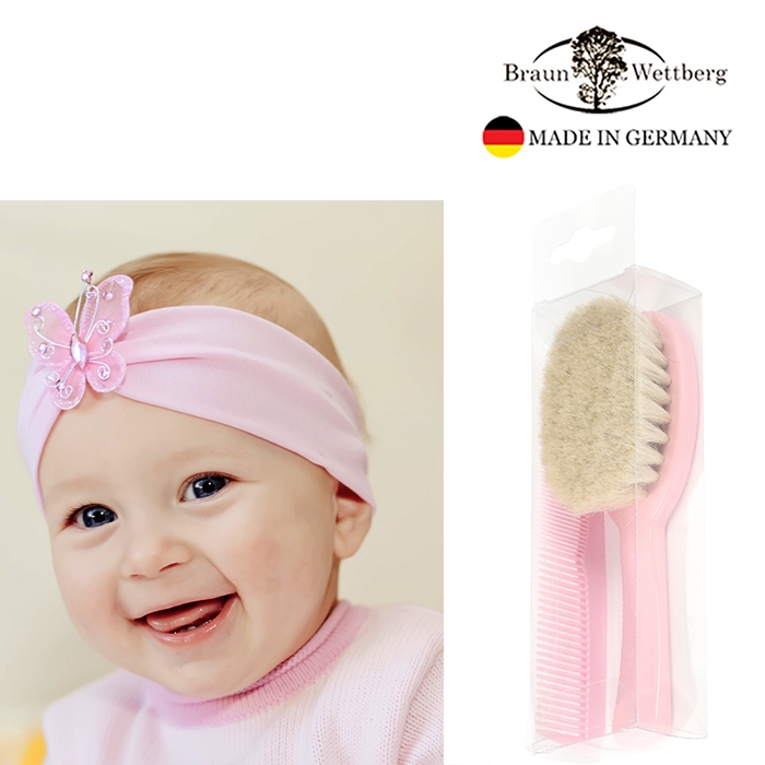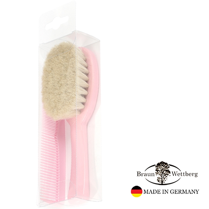 德國BRAUN WETTBURG德國製 特長山羊毛 寶寶 嬰兒用髮梳與齒梳 粉紅色套組