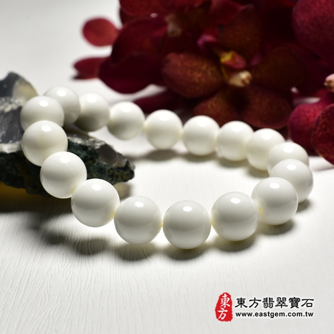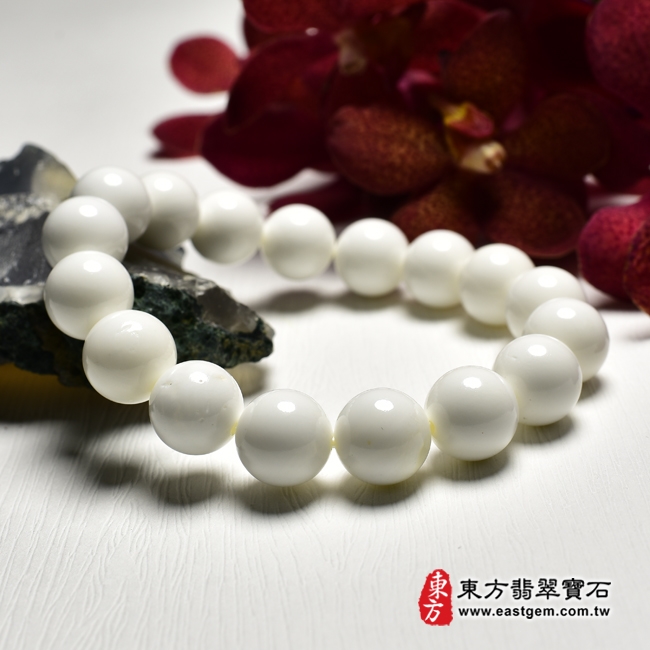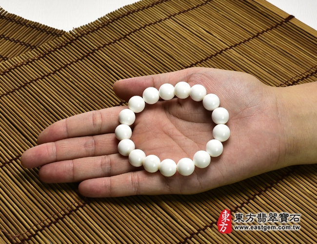 商品名稱:白硨磲手鍊(白硨磲珠子,珠徑約12mm,17顆珠,WCG108)。客製化設計各種白硨磲珠串、白硨磲珠子、白硨磲手鍊、白硨磲手珠。★附東方翡翠寶石保證卡