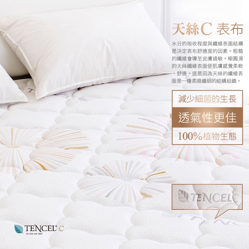 底層採用歐洲最新科技3D網眼布,適合台灣海島型氣候,夏天睡覺透氣不悶熱。具有絕佳的透氣性和透濕性,給您健康、舒爽的睡眠環境。具有抗過敏,防靜電,抗塵蹣等功效而不含有害物質。