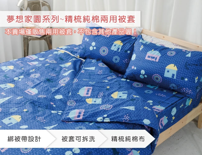 一般市面上所購買得到的兩用被套均為單面印花,另一面則採用素色TC布料,故產品容易有縮水、起毛球的情況發生。