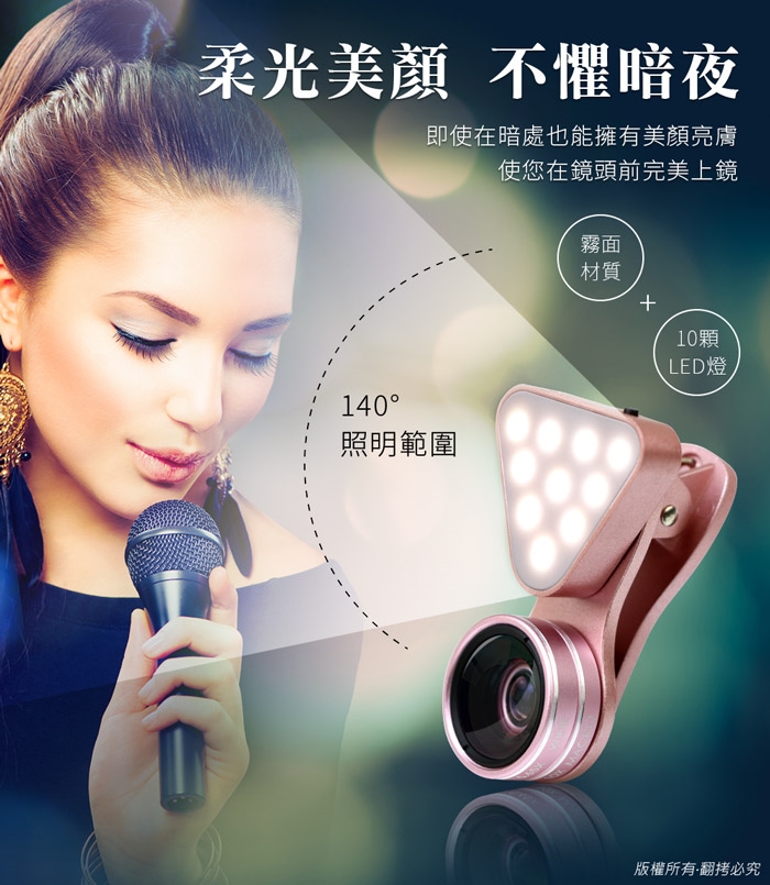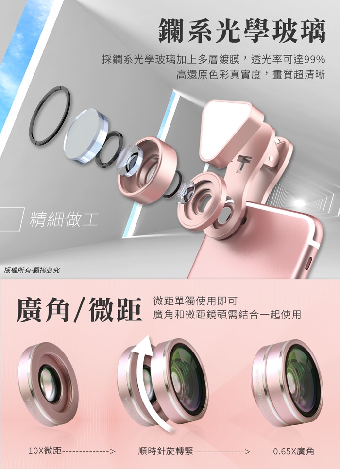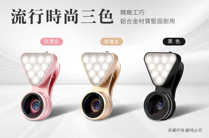 ◆三合一功能夾式鏡頭:廣角/微距/補光燈,輕鬆帶著走!