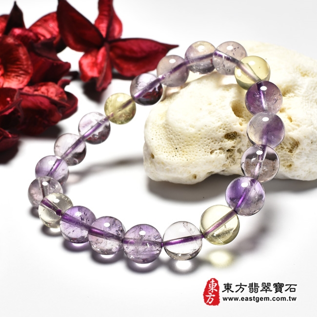 商品名稱:紫水晶加黃水晶手鍊(紫水晶珠子,珠徑約9.5-10mm,4顆黃珠+16顆紫珠,OPB061) 客製化設計各種紫水晶珠串、紫水晶珠子、紫水晶手鍊、紫水晶手珠、黃水晶珠子、黃水晶手鍊、黃水晶手珠。★附東方翡翠寶石保證卡
