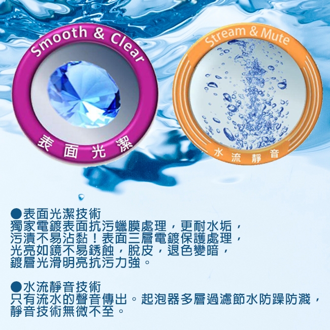 .定期使用清潔劑擦洗去汙,擦洗前先用清水沖淨龍頭表面並用軟棉布抹乾,再加上中性清潔劑輕輕擦拭,保持其表表面清潔。