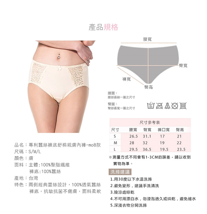 褲底:100%蠶絲