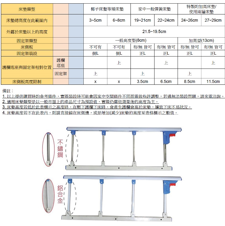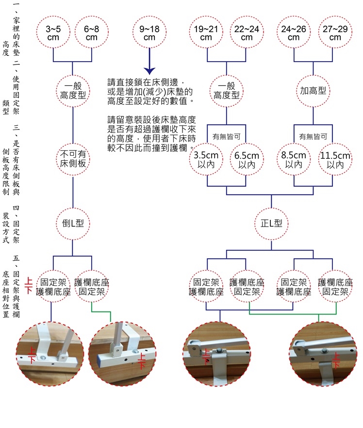 1. 依家中床與床墊的規格不同,須選擇不同的產品類型,請參考產品資訊內容最下方的裝設說明!