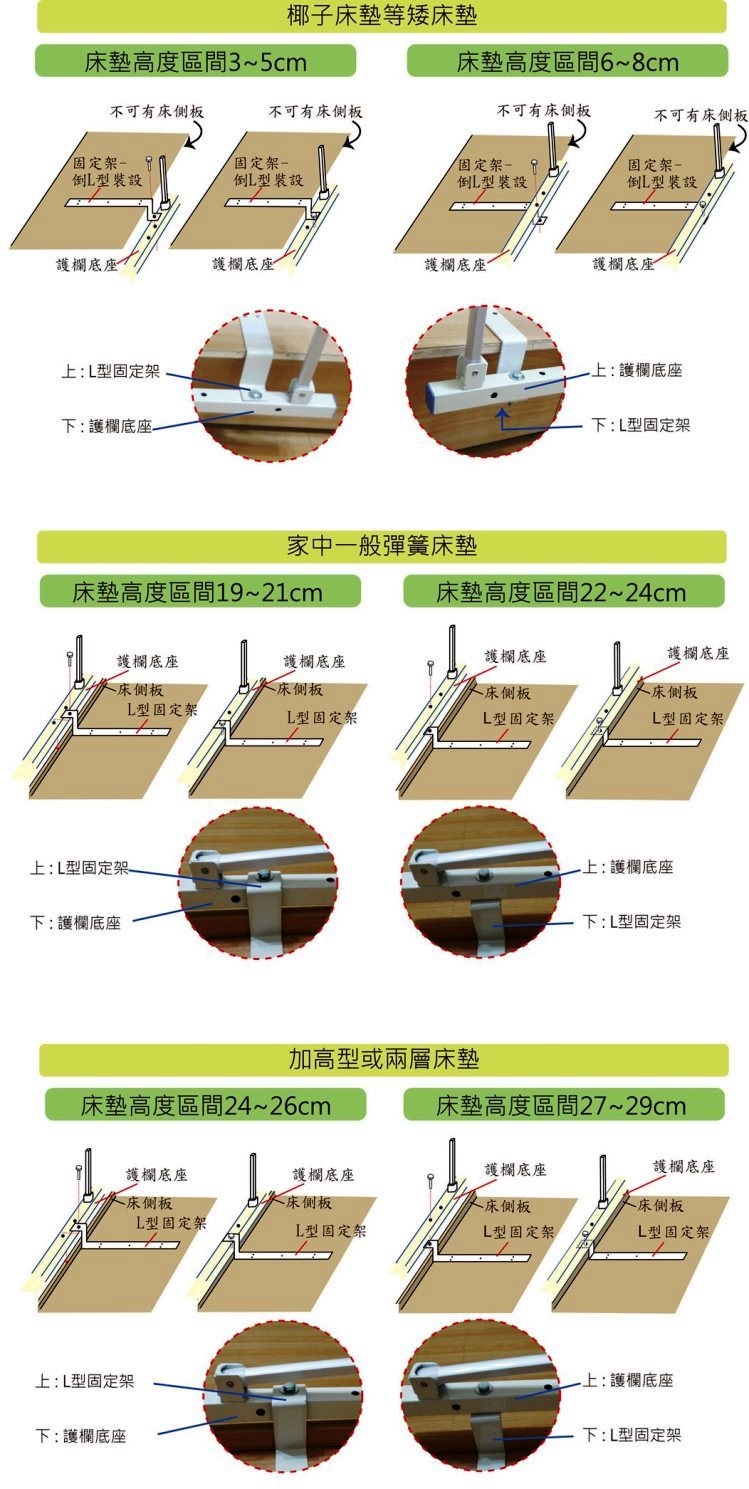 ☀裝設提醒 :若家中床墊超過24cm,可選擇「加高型」購買哦!