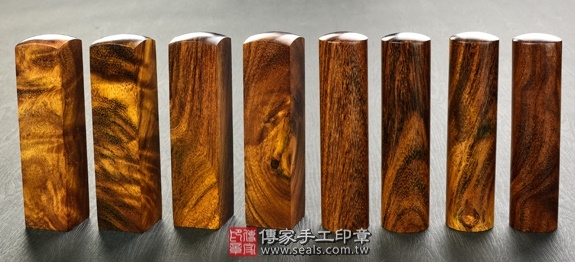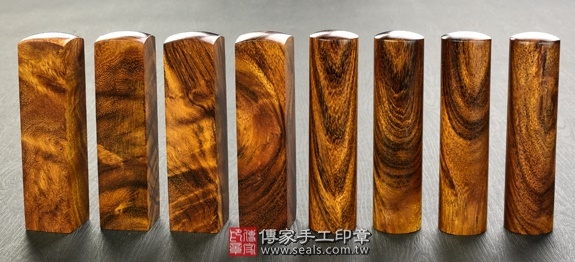 1. 傳家手工印章嚴選南美洲地區的「頂級南美洲紅檀樹瘤」。樹瘤會是一棵樹木的極品。南美洲紅檀樹瘤的顏色為紅褐色,會隨著時間越久,顏色會越來越深紅,印身上會有深淺相間的黑色的線條,印章的外觀具有自己的獨特性又好看。