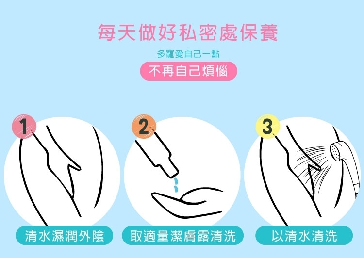 取適量無須稀釋,從外陰部肌膚由前往後到股溝間潔淨後,再以清水洗淨即可。可天天使用。