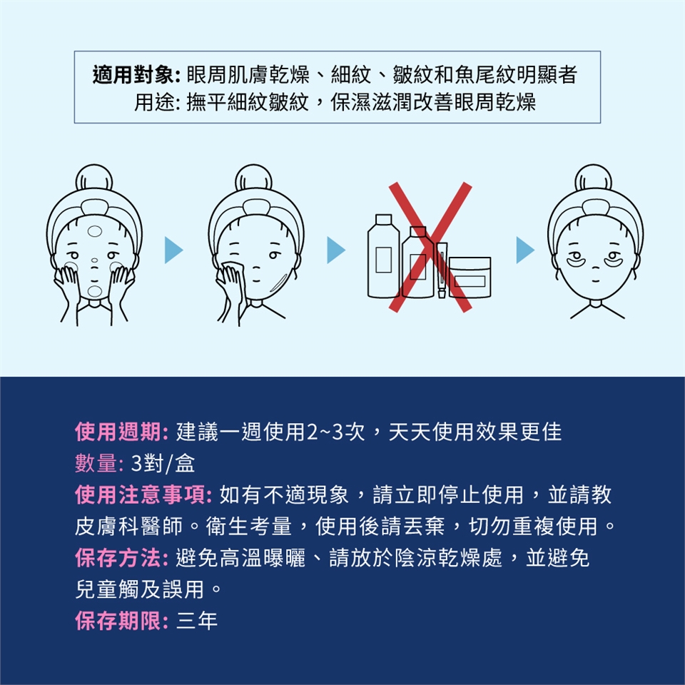 1.洗臉後請立即使用,無須再使用其他保養品。且因眼膜已飽含淡化亮白精華成分。