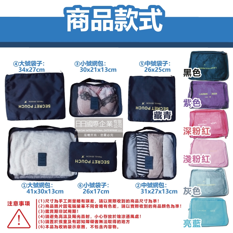 ●產品尺寸:3個大中小網包+3個大中小袋子