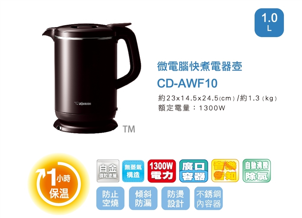 象印*1公升*微電腦快煮電氣壺(CK-AWF10)