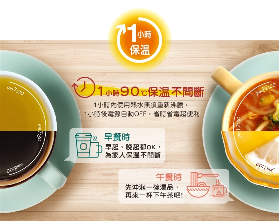 ‧自動斷電裝置:即使沸騰感應裝置沒有運作,微電腦也能自動電源off。
